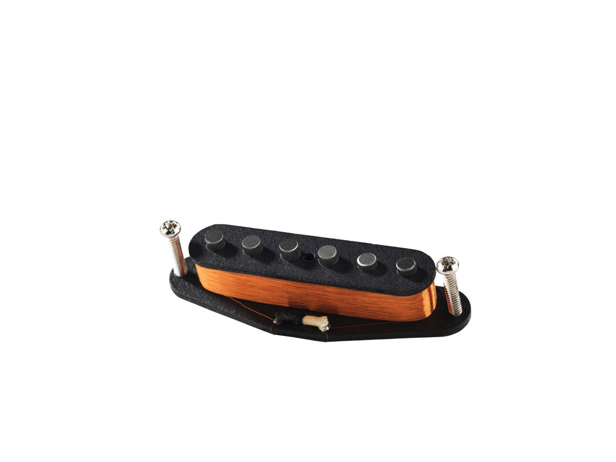 This is our most popular Stratmodel. Think Stevie Ray or Shadows. This pickup is wound with a doubleinsulated magnetwire. When we started in the beginning of the 90 s this stratpickup were one of the first models in our line. The insulation is called Formvar. This is the same wire that a big company used in the golden years 1954-1964. There is no better vintagepickup than this one. We punch-press the flatwork with our own tooling inhouse. This gives the correct surface on the sides as well. Overkill? We don't think so. The 3 pos.soundsample shows a 6 K Ohm version in all positions. The 5 position soundsample shows a calibrated set. In our calibrated set the neck and middlepickup is 6 K Ohm and the bridgepickup is ca 6,6 K Ohm. Avalible in calibrated sets. The bridge pickup is wound with more turns of copperwire to compansate for less stringmovement in the bridge position. This will make the bridge pickup sound fuller. A calibrated set will make it easier to use all three pickups. Cover, screws and rubber springs included.