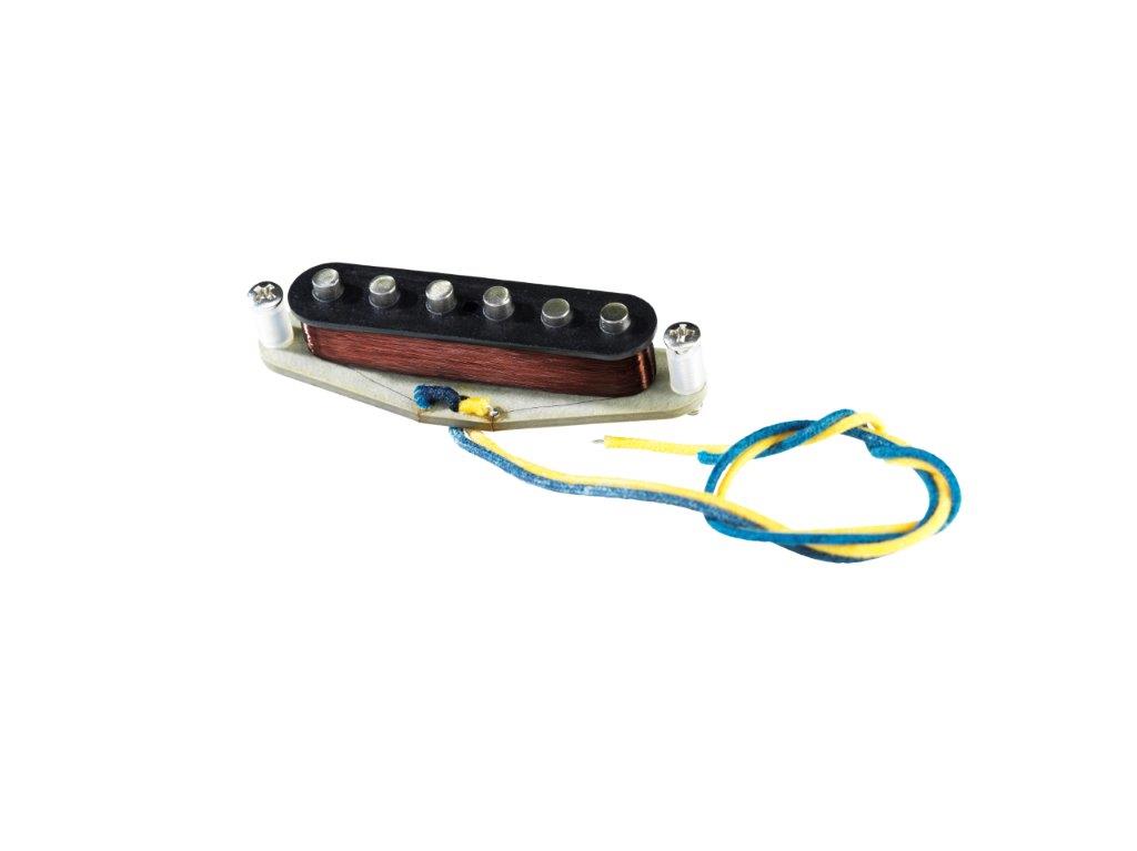 Combining superior clarity, tight bottom and a wooden character in the mids Grey Monterey® meticulously captures the 67-69 tone. In the late '60s the world was a-changing and it all came together on the stage at Monterey when a young guitarist plugged his Stratocaster® into a plexi Marshall amp. AlNiCo 5 rod magnets with D and G raised at equal height in combination with the Plain enamel coated wire will deliver exceptional string separation. All the small details incorporated into this pickup makes it both tonally and visually time-true to a short period of the end of a decade. Each handmade pickup is lacquered and dated with serial number on the GREY bottom. We punch-press the flatwork with our own tooling in-house. This gives the correct surface on the sides as well. Overkill? We don't think so. The vintage push back cloth wire is colored time typically correct- Yellow and Blue. As a matter of fact the same colors as the Swedish flag. Calibrated sets with NON-reverse middle pickup. Bridge 5,9k / Middle 5,8k / Neck 5,7k. Optional- Add our Lundgren inductance base plate in our shop on the bridge pickup for a slight boost in that position. Cover, screws and rubber springs included.