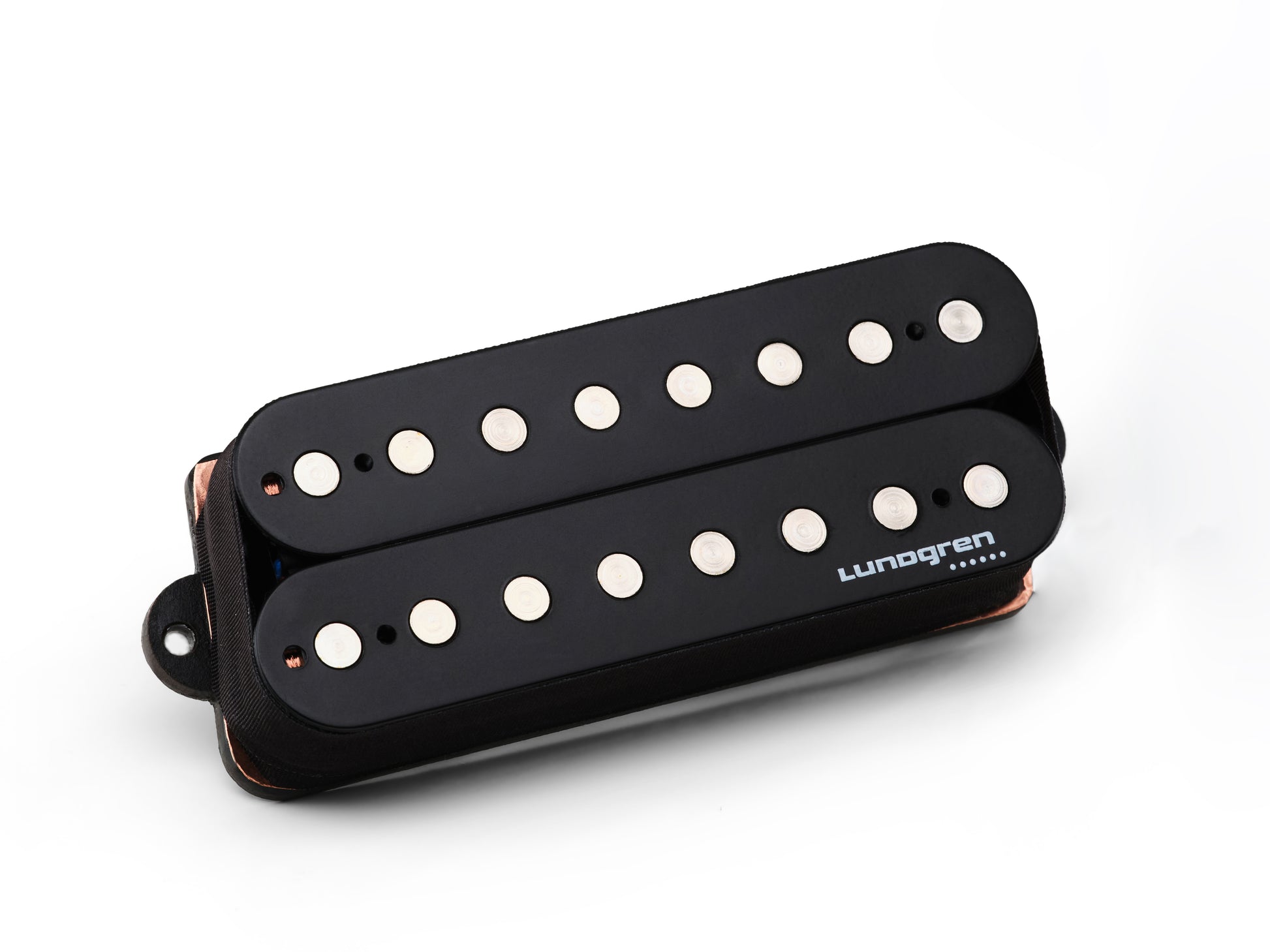 Lundgren M8 10 degree multiscale. We supply the original straight M8 to Ibanez guitars. Introduced 1999 and is a pioneer at open 8 stringed pickups. Often Imitated but not nailed. Go for the original.