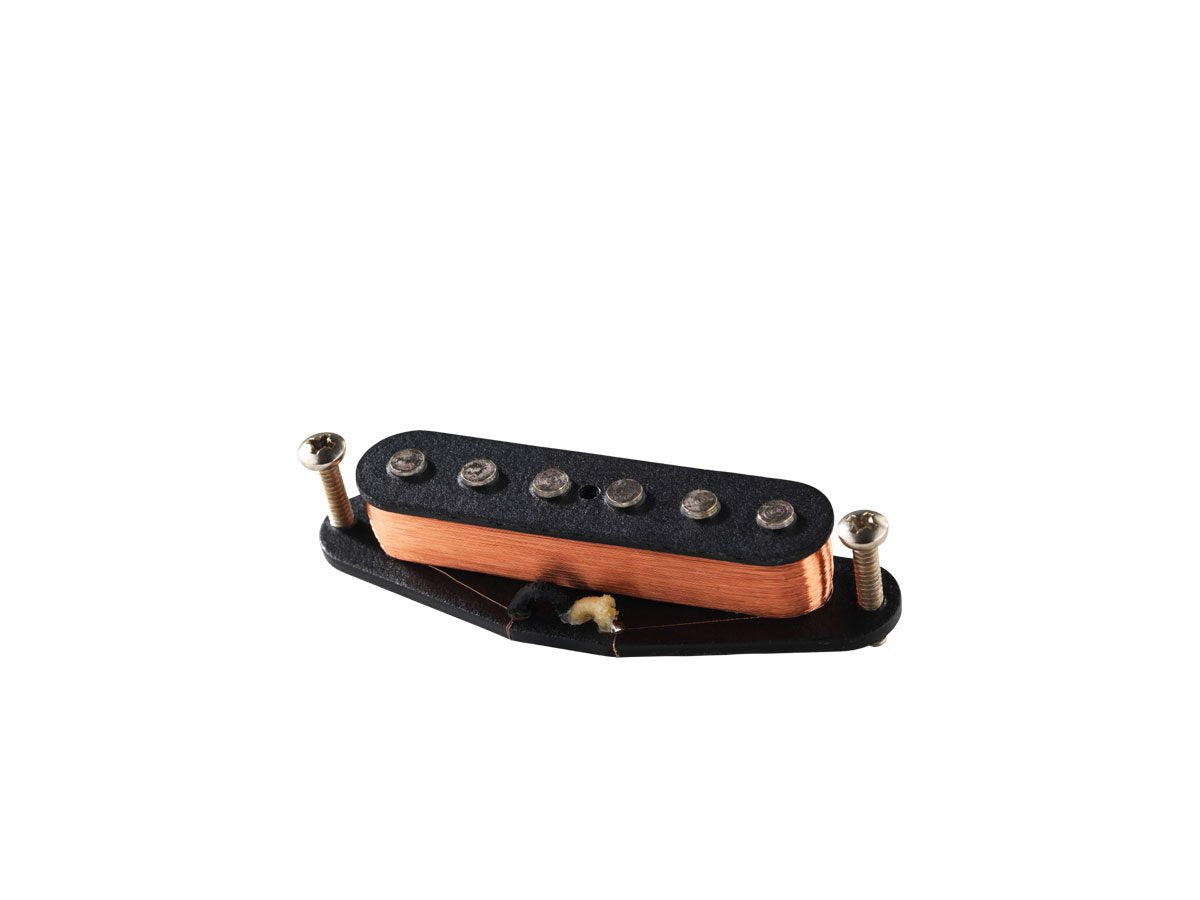 It has poles of iron and the magnets are placed under the coil. This together with the winding makes the output much higher than a standard strat® pickup. Avalible in calibrated sets. The bridge pickup is wound with more turns of copperwire to compansate for less stringmovement in the bridge position. This will make the bridge pickup sound fuller. A calibrated set will make it easier to use all three pickups.